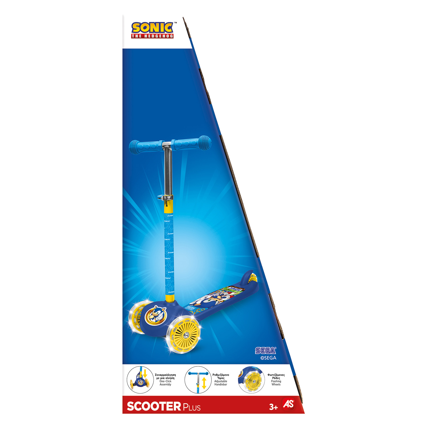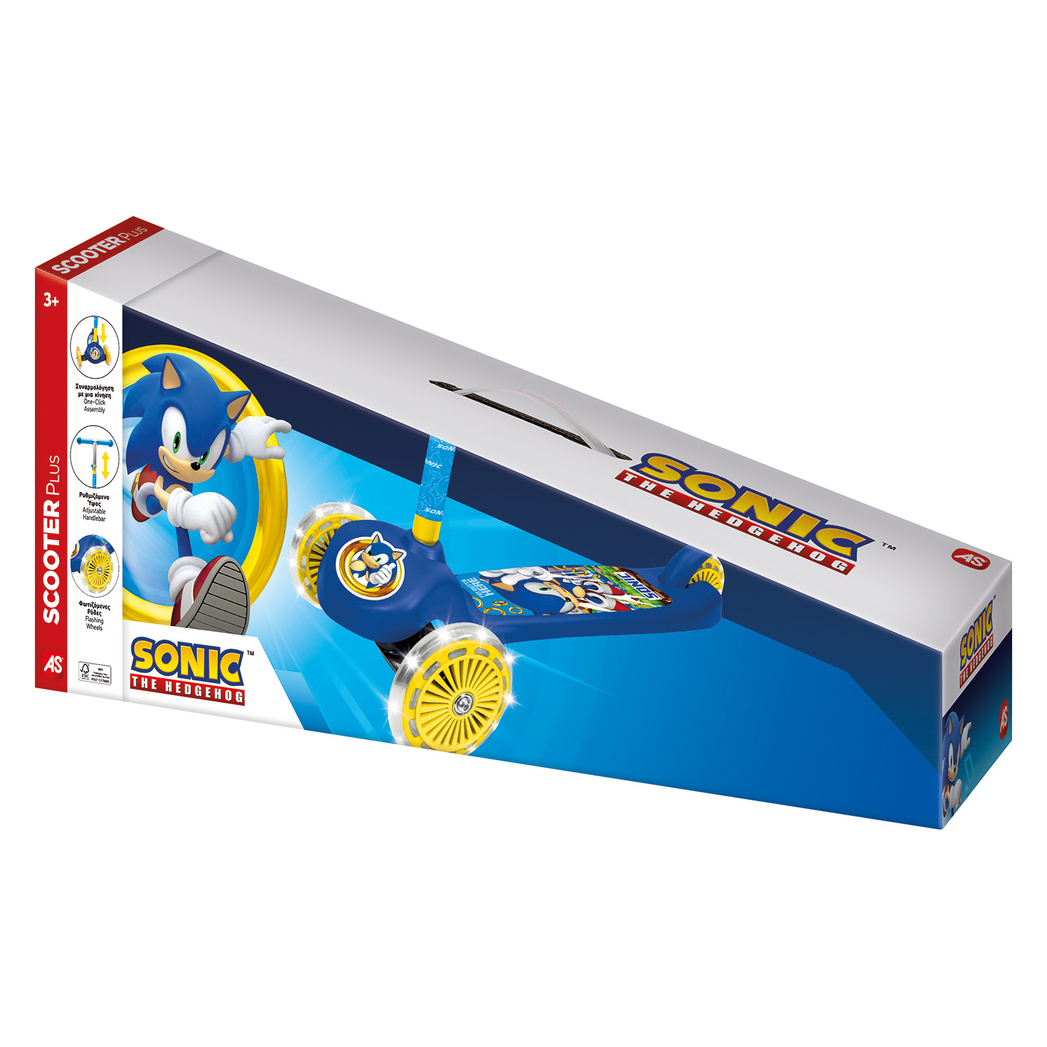 Το AS Scooter Plus Sonic με φωτιζόμενες ρόδες είναι ένα ασφαλές και διασκεδαστικό scooter για νεαρούς θαυμαστές του Sonic. Με 3 ρόδες για καλύτερη ισορροπία, ρυθμιζόμενο τιμόνι και αντιολισθητική βάση, προσφέρει άνεση και σιγουριά σε κάθε βόλτα. Οι φωτιζόμενες ρόδες χαρίζουν εντυπωσιακό θέαμα και ενθαρρύνουν το παιδί να βγει έξω για παιχνίδι και κίνηση. Ιδανικό για ηλικίες 3+ Ετών, συνδυάζει παιχνίδι και ασφάλεια σε ένα προϊόν με τον αγαπημένο ήρωα τους.