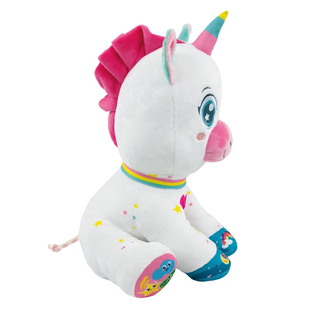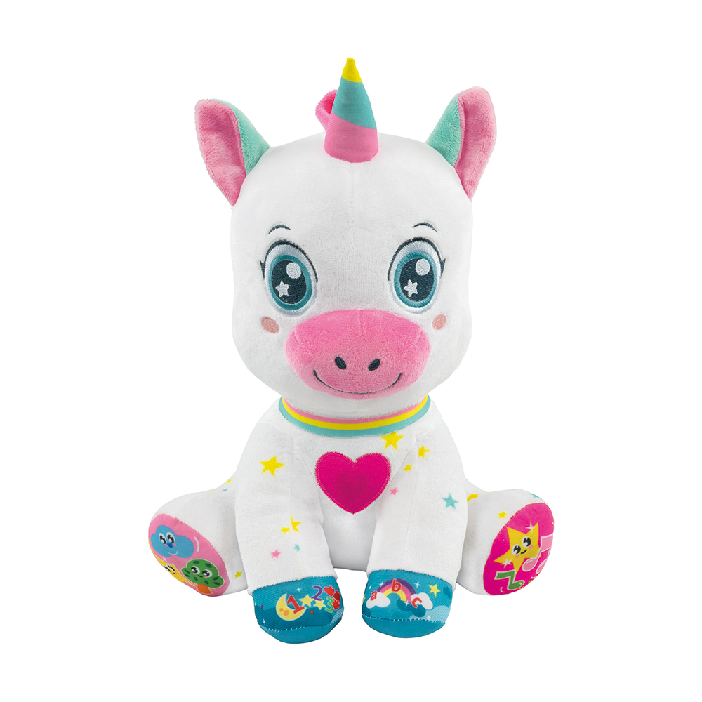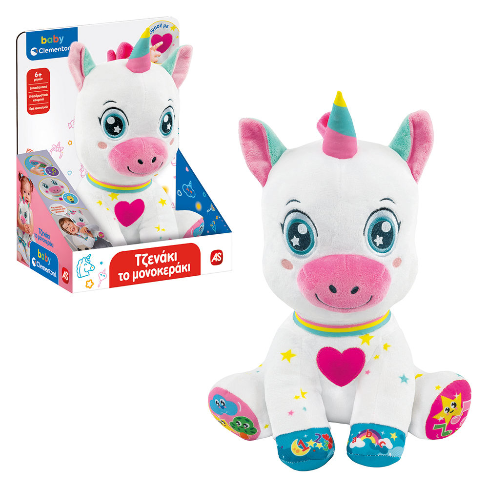 Το Τζενάκι το Μονοκεράκι είναι η πιο γλυκιά παρεούλα για ασταμάτητες αγκαλιές ! Μαλακό λούτρινο με 5 διαδραστικά κουμπιά για να μάθει το παιδί τους πρώτους αριθμούς, τα πρώτα γράμματα, τα σχήματα και τα χρώματα. Το Τζενάκι το Μονοκεράκι βοηθάει το παιδί να αναγνωρίσει πολλές νέες λέξεις χάρη στα χαρούμενα τραγουδάκια και τα αστεία ποιηματάκια. – 5 διαδραστικά κουμπιά: Μαθαίνει τα πρώτα γράμματα, τους πρώτους αριθμούς, τα σχήματα και τα χρώματα – Μουσική: Το παιδί ακούει πολλά χαρούμενα τραγουδάκια μαθαίνοντας καινούργιες λέξεις ενώ διασκεδάζει – Ασφάλεια: Μαλακό, μη τοξικό ύφασμα, για ασφαλείς αγκαλιές! – Εφέ φωτισμού: Το κέρας και τα μάγουλα φωτίζονται! – Αισθητηριακή ανάπτυξη: Η γλυκιά φωνή από το Τζενάκι προσελκύει την προσοχή του παιδιού τονώνοντας την ακουστική του αντίληψη με πολλά τραγουδάκια και αστείους ήχους. Η εικόνα στα κουμπιά, με τα λαμπερά χρώματα από τα ζωάκια, ενθαρρύνει την ανάπτυξη της οπτικής αντίληψης – Ψυχοκινητική ανάπτυξη: Τα πολλά διαδραστικά κουμπιά βοηθούν το παιδί να ανακαλύψει τη σχέση μεταξύ αιτίας-αποτελέσματος, ενθαρρύνοντας το να κάνει όλο και πιο ελεγχόμενες και συνειδητές κινήσεις και να αναπτύξει το συντονισμό ματιών-χεριών – Γνωστική ανάπτυξη: Ένα παιχνιδιάρικο και χαρούμενο ερέθισμα για να αναπτύξει τη γλώσσα μέσα από τραγούδια και ποιηματάκια – Συναισθηματική ανάπτυξη: Το Τζενάκι εμπλέκει το παιδί ενθαρρύνοντάς το να παίξει μαζί του, να πατήσει ένα κουμπί ή να την αγκαλιάσει Τα παιχνίδια της σειράς Baby Clementoni βοηθούν τους γονείς να επικοινωνούν και να αλληλεπιδρούν με το μωρό από τις πρώτες ημέρες της ζωής του. Με καινοτόμο σχεδιασμό και χρώματα, μη τοξικά και ανθεκτικά υλικά, καθώς και με ανάγλυφες επιφάνειες και πολλές δραστηριότητες ευνοούν την ανάπτυξη των οπτικών, απτικών και ακουστικών ικανοτήτων, την κινητική δραστηριότητα και τους πρώτους λογικούς συσχετισμούς.