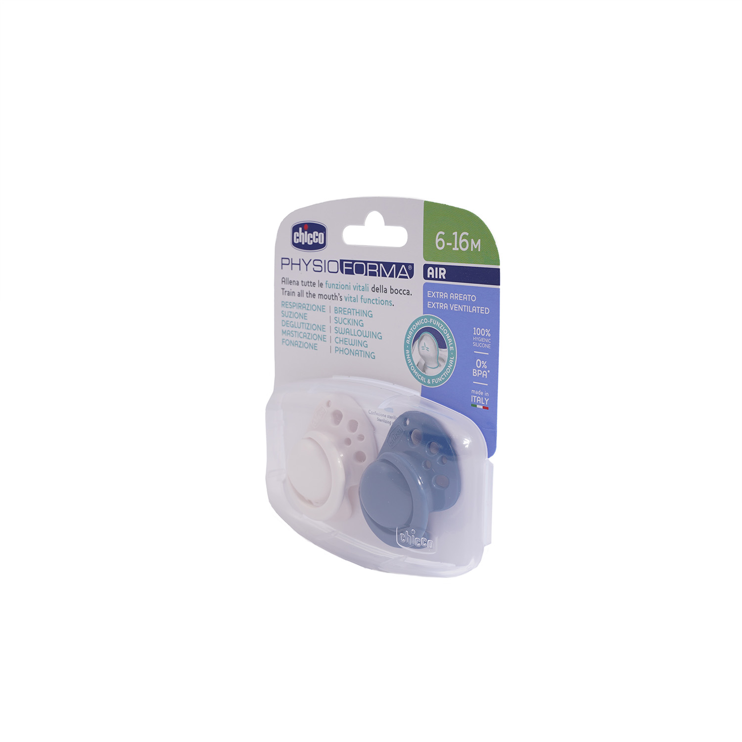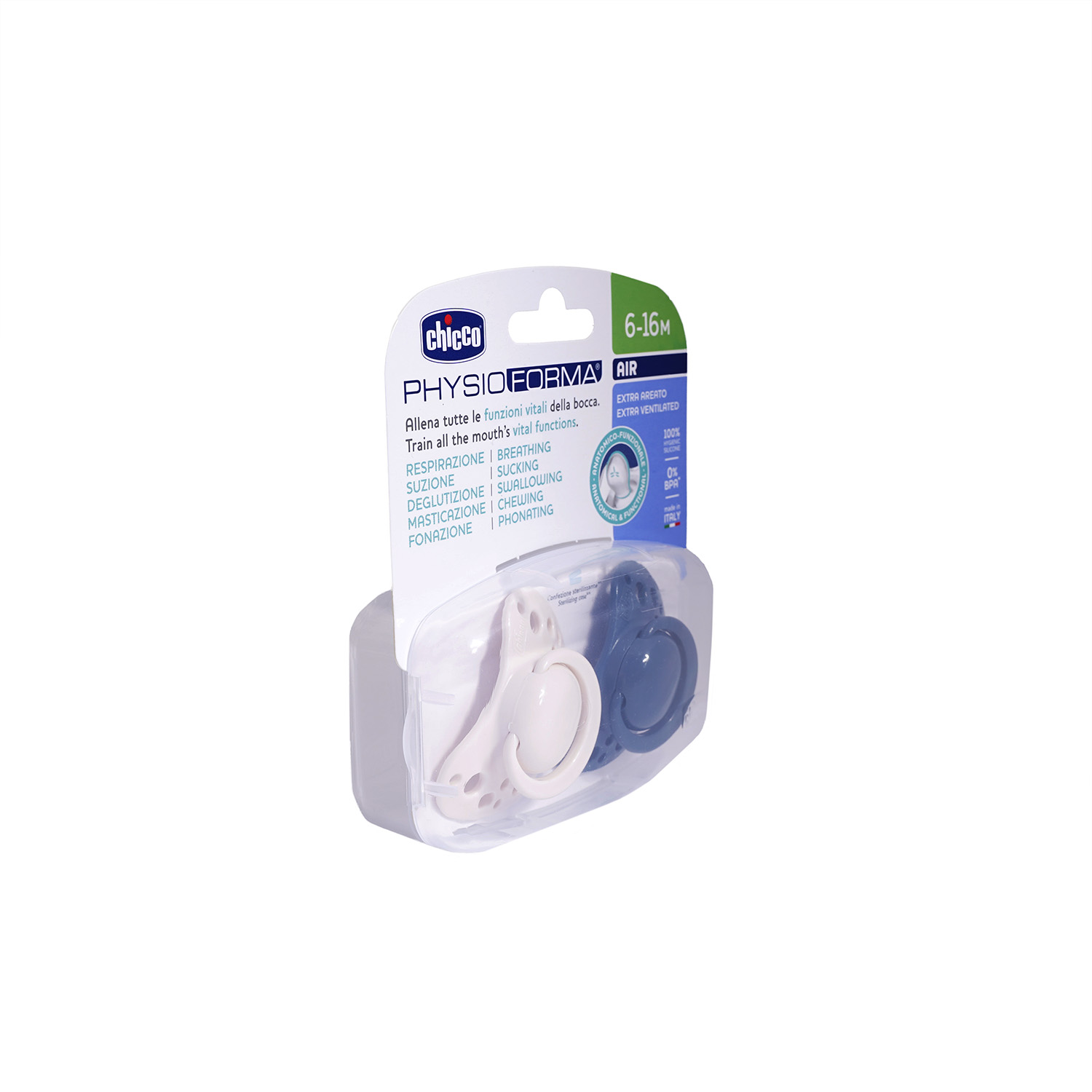 Chicco Πιπίλα Δύο Τεμαχίων Physio Air με Θηλή Σιλικόνης & Θήκη σε Μπεζ-Γκρι Μπλε Για 6-16 Μηνών