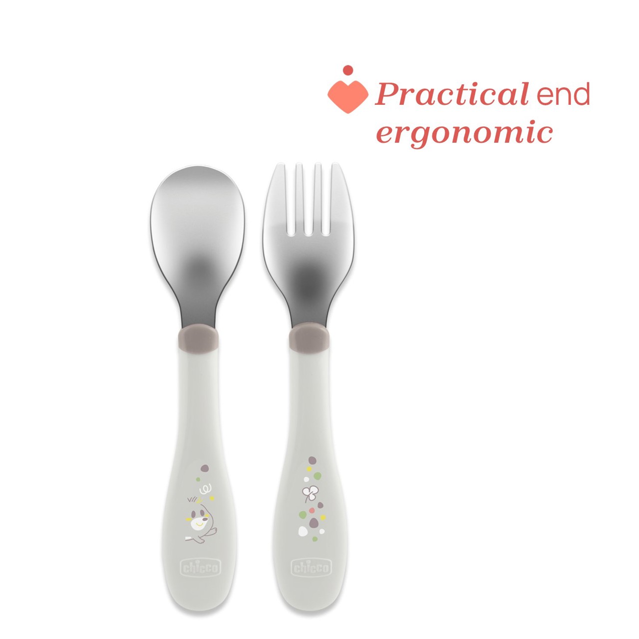 Chicco Βρεφικό Σετ Πιρούνι – Κουτάλι Μεταλλικό Τιρκουάζ Για 18+ Μηνών
