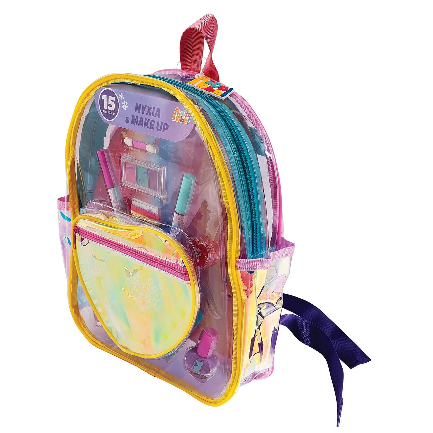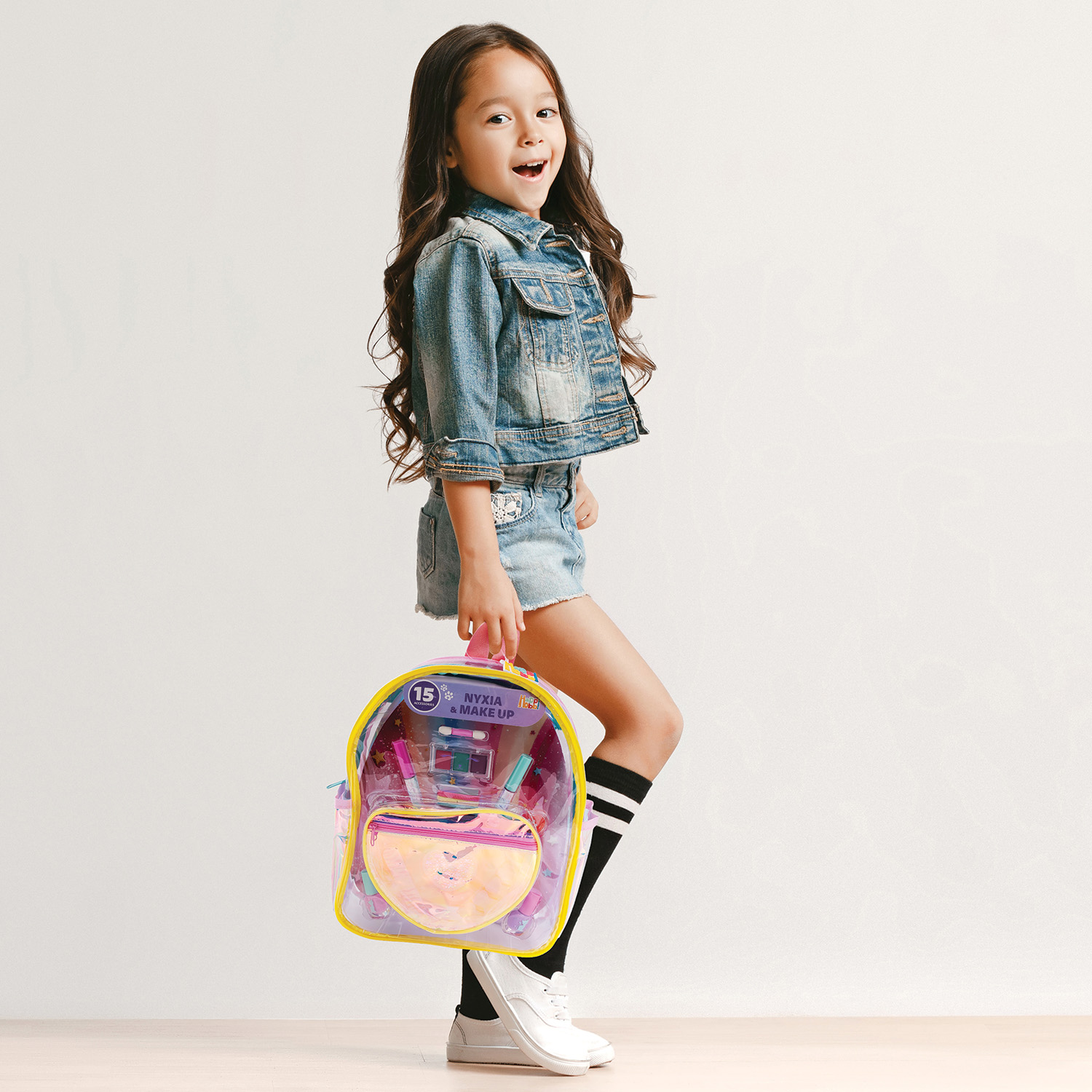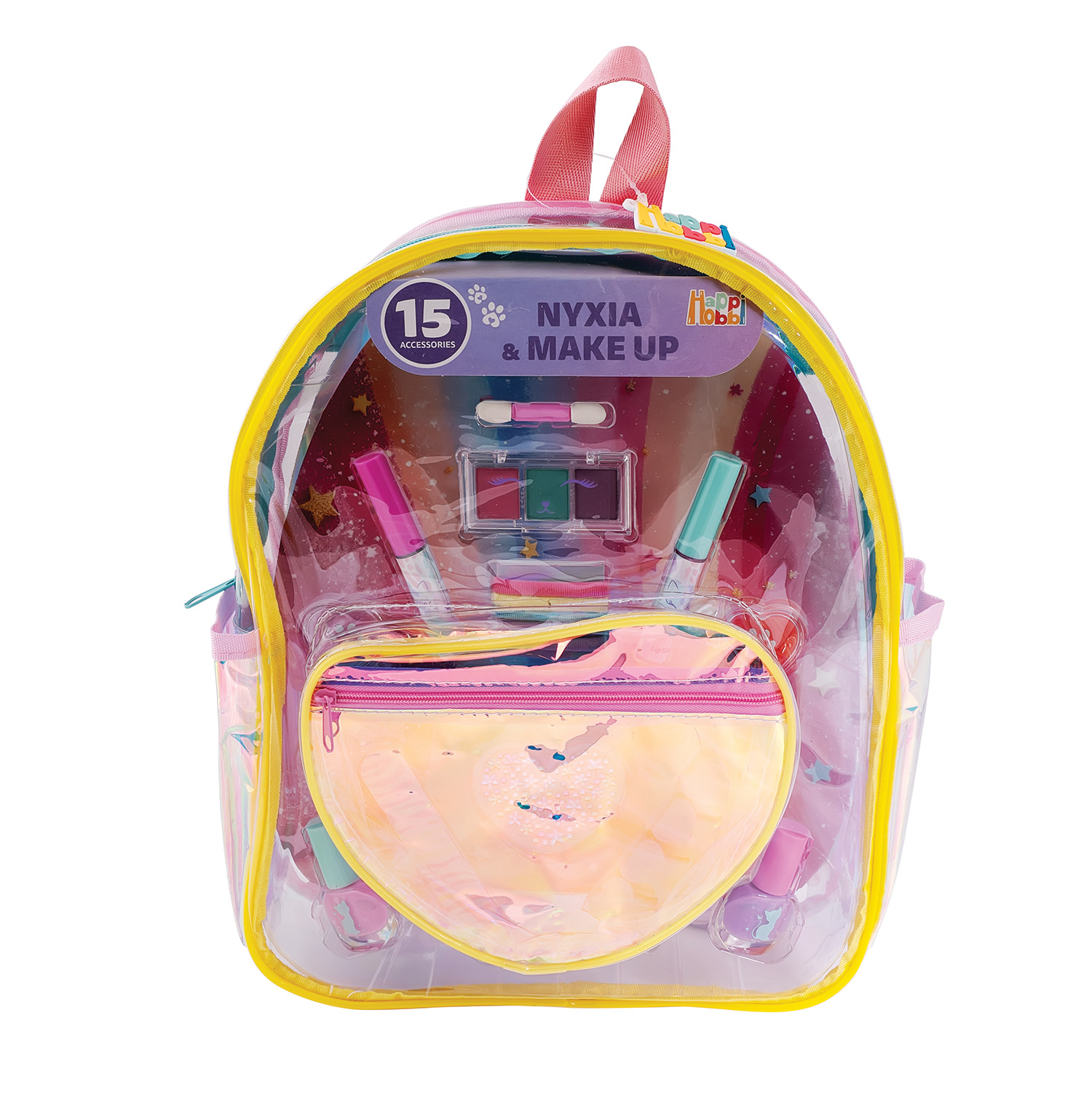 Δημιούργησε το δικό σου μοναδικό beauty look, πειραματίσου με χρώματα και ατέλειωτη φαντασία με το μοδάτο fashion backpack που περιέχει 15 μοναδικά αξεσουάρ για νύχια & make up Περιέχει – 2 lip gloss – 1 παλέτα σκιών (3 χρωμάτων) – 1 πινελάκι – 2 lip balms – 2 μανό – 1 λίμα – 1 διαχωριστικό δαχτύλων – 5 λαστιχάκια μαλλιών – Αυτοκόλλητα νυχιών